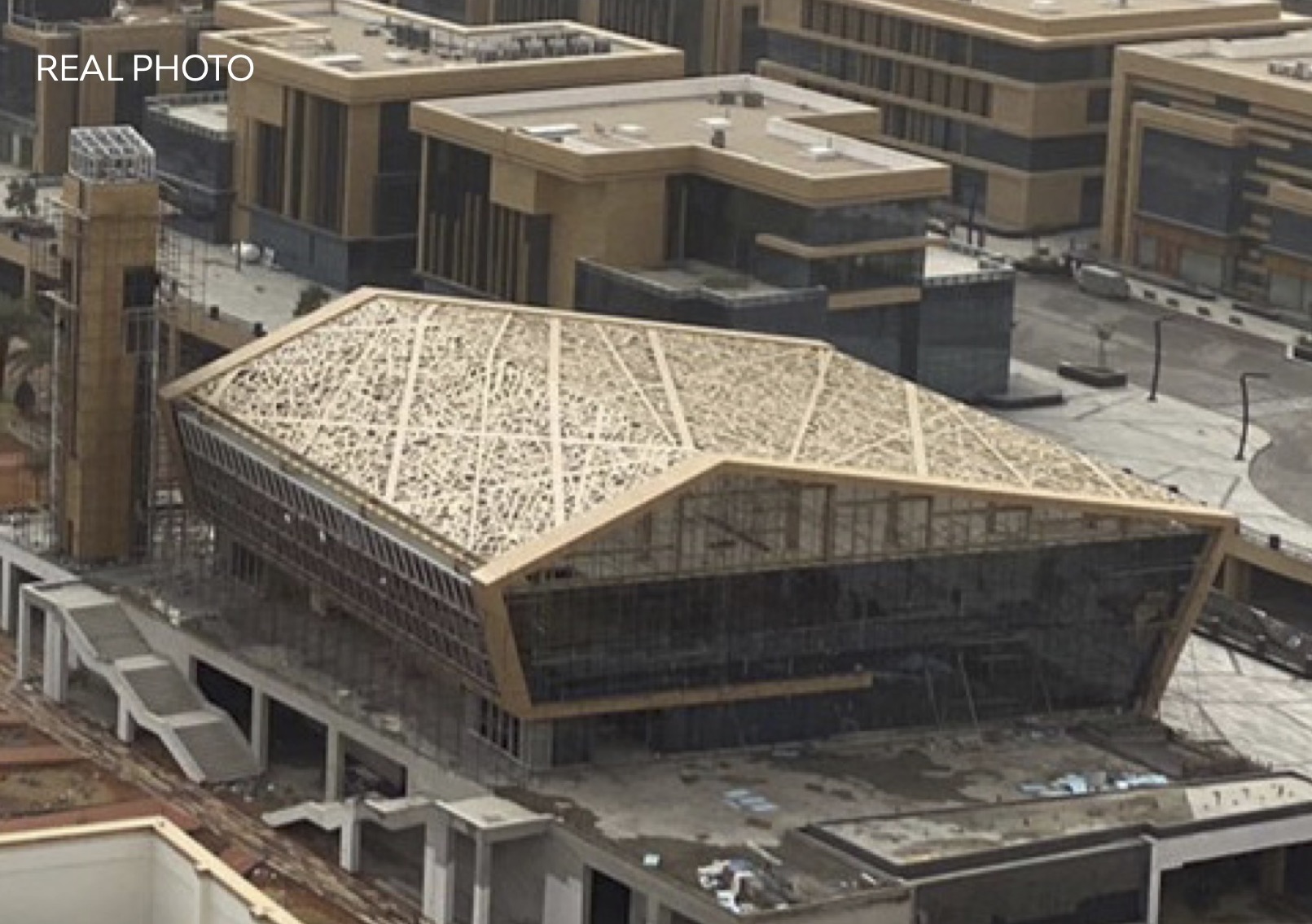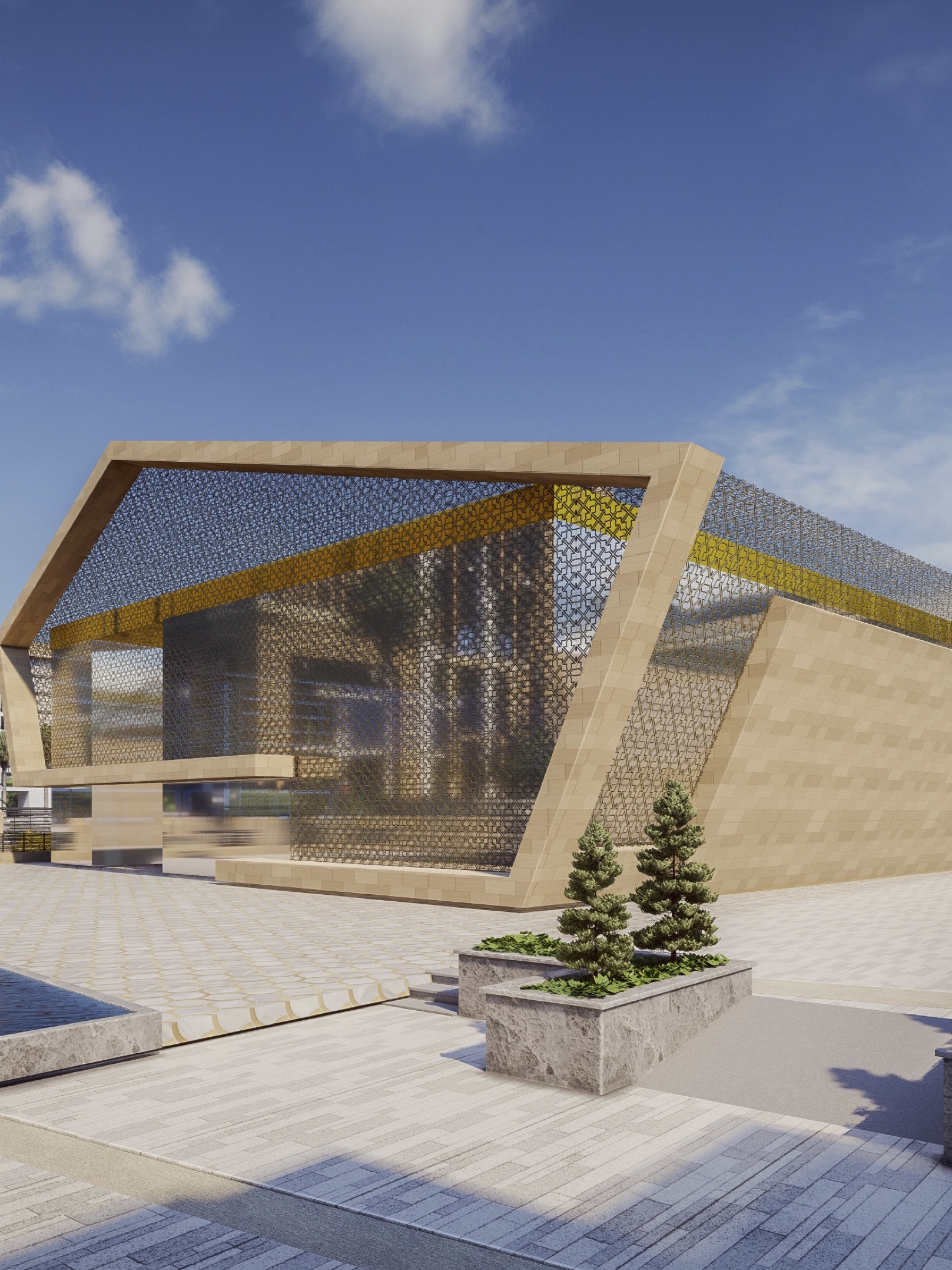 Renewing the forms of ( Mashrabia ) while preserving their values and significance involves incorporating shapes inspired by fundamental elements of the Saudi natural environment, such as intertwining palm fronds and a streamlined aesthetic that servesthe function of the fountain.